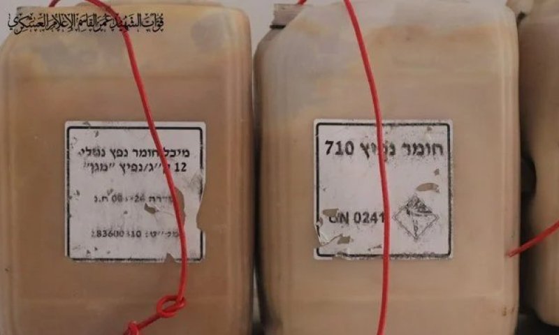 לראשונה מאז תחילת המלחמה ובאופן חריג, ברצועת עזה פרסמו היום תמונות של מיכלים עם חומר נפץ נוזלי שמשמש את צה"ל לפיצוץ מבנים ותשתיות