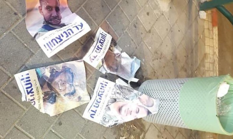 סערה בחדרה: תמונות חללים הוסרו ונמצאו קרועות בפח