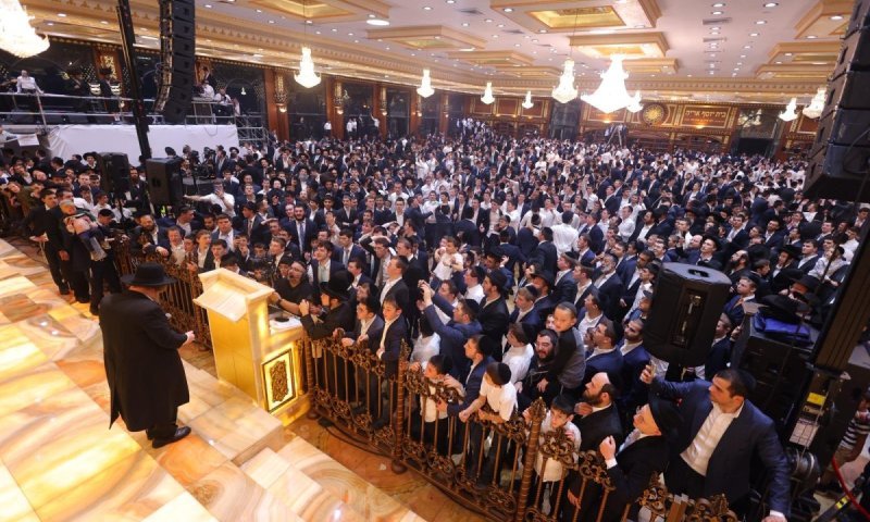 המעמד נמשך שעות ארוכות אל תוך הלילה, כאשר ההיכל כולו רוקד בשירה עוצמתית עם בעלי המנגנים המפורסמים ר' אהרלה סאמעט ור' זאנוויל וינברגר, בליווי תזמורתו המורחבת של איציק אייזנשטט.