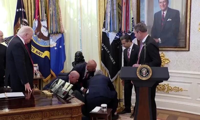 באמצע דיון עם הנשיא טראמפ, נציג חברת תרופות התמוטט