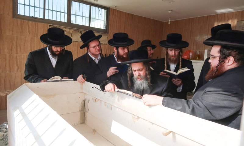 הקמת מצבה על קברו של הרבי מקרעטשניף סיגעט זצ"ל צילום: מ.א נוימן