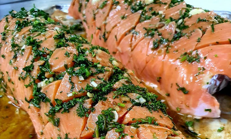 מתכון לפילה סלמון שלם בעשבי תיבול