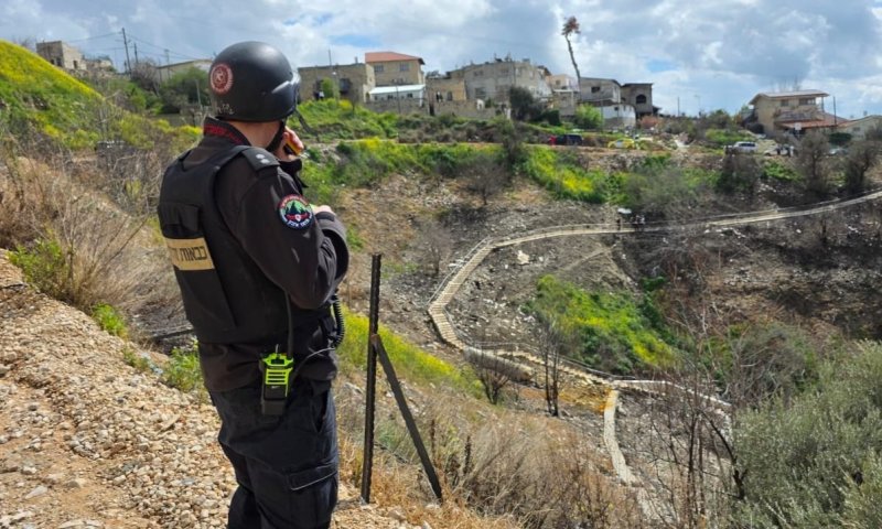 תיעוד מפעילות המשטרה בזירת נפילת שברי היירוט בצפת
